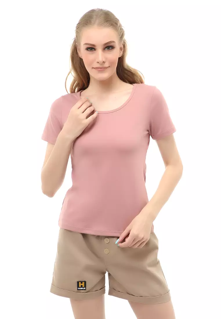 HamlinWish Baju Olahraga Kaos Sport Wanita Lengan Pendek Sporty Shirt Jaring Transparan Material Polyester ORIGINAL - Peach1437500.00575000.00