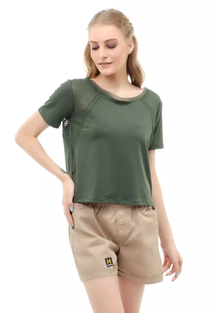 HamlinWish Baju Olahraga Kaos Sport Wanita Short Sleeve Absorb Sweat Kombinasi Jaring Material Polyester ORIGINAL - Green Bottle1345000.00538000.00