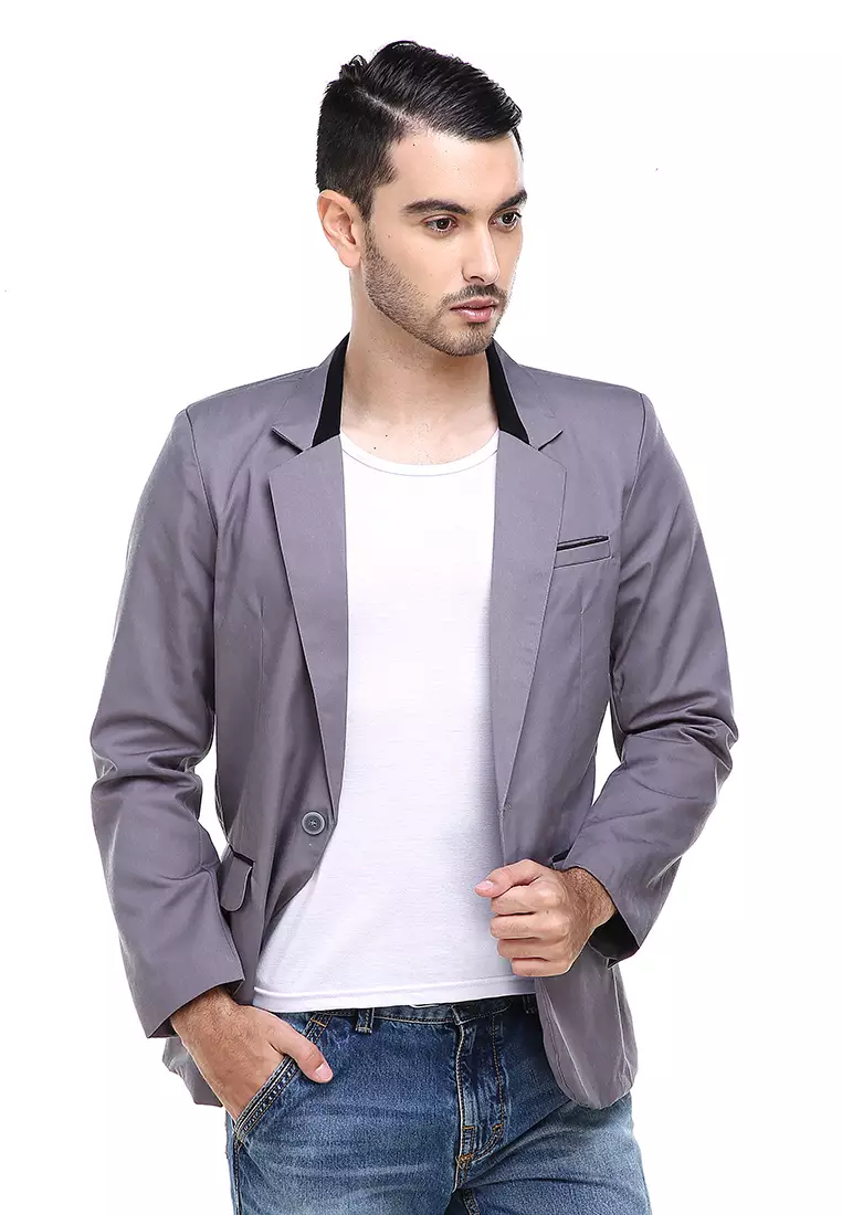 Woreq Jas Blazer Pria Three Pockets Collar Stripe Black Formal Casual Suit Material Drill ORIGINAL - Gray