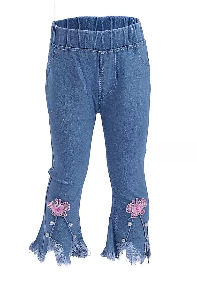 Yocelyn Celana Jeans 7/8 Anak Perempuan Kid Long Pants Desain Rawis Material Denim ORIGINAL - Light Blue