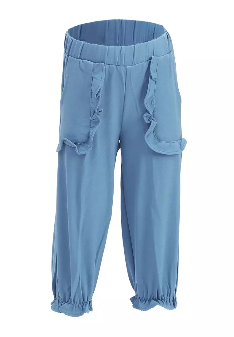 Yocelyn Celana Panjang Anak Perempuan Variasi Saku Pants Kids Daily Motif Polos Material Crepe ORIGINAL - Baby Blue