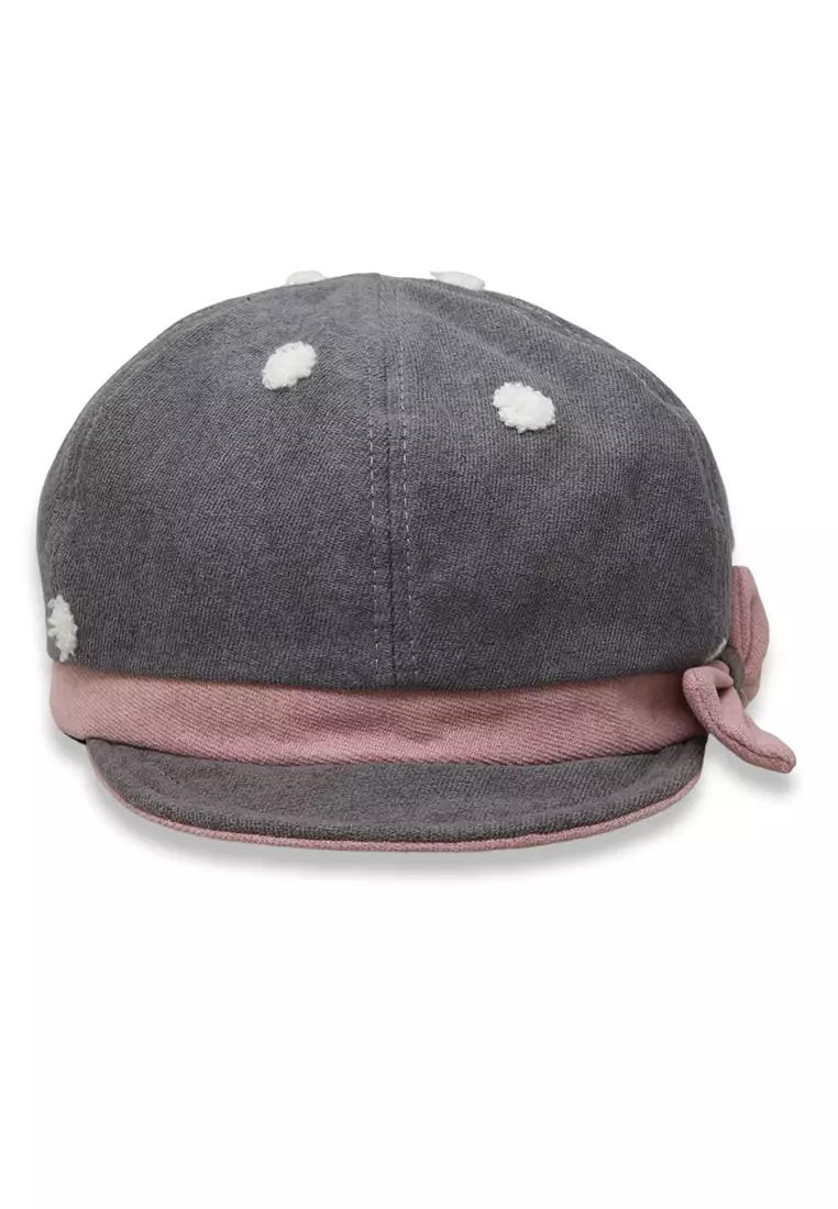 Zello Topi Beret Anak Perempuan Motif Pita Polkadot Children Hat Retro Design Material Cotton ORIGINAL - Gray