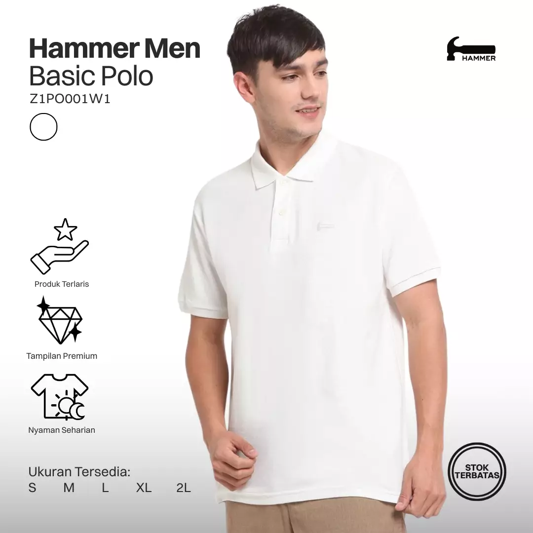 Hammer Men Polo Basic Z1PO001W1 | Kaos Kerah Pria lengan Pendek Putih