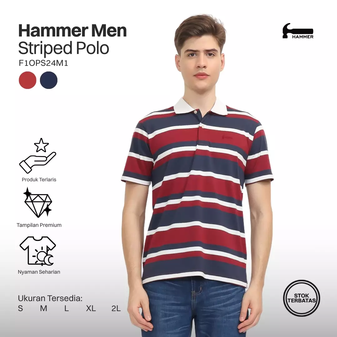 HammerHammer Men Polo Striped F1OPS24M1 I Kaos Polo Garis Lengan Pendek Merah399900.00169900.00