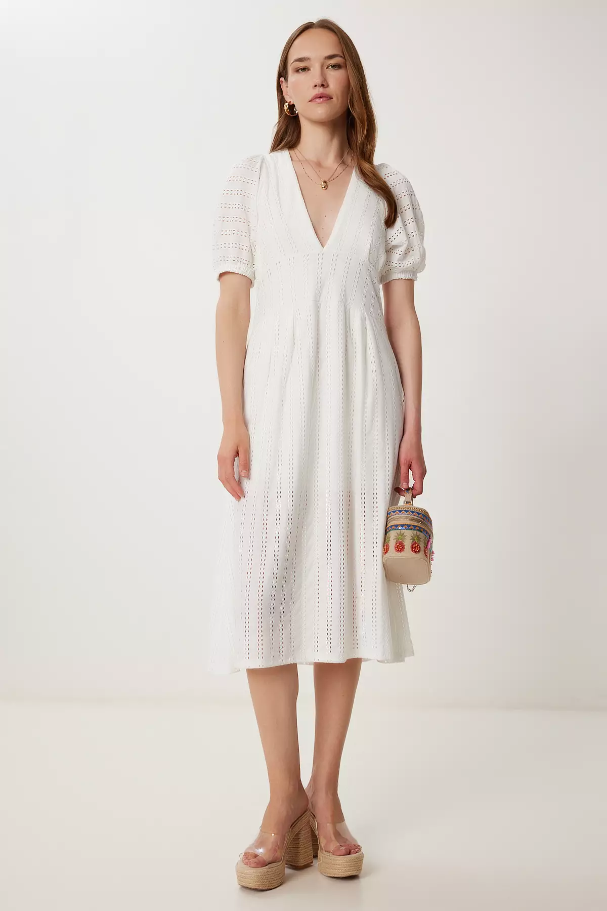 Happiness IstanbulWomen's Ecru Openwork Summer Midi Knitted Dress Tp00050809000.00