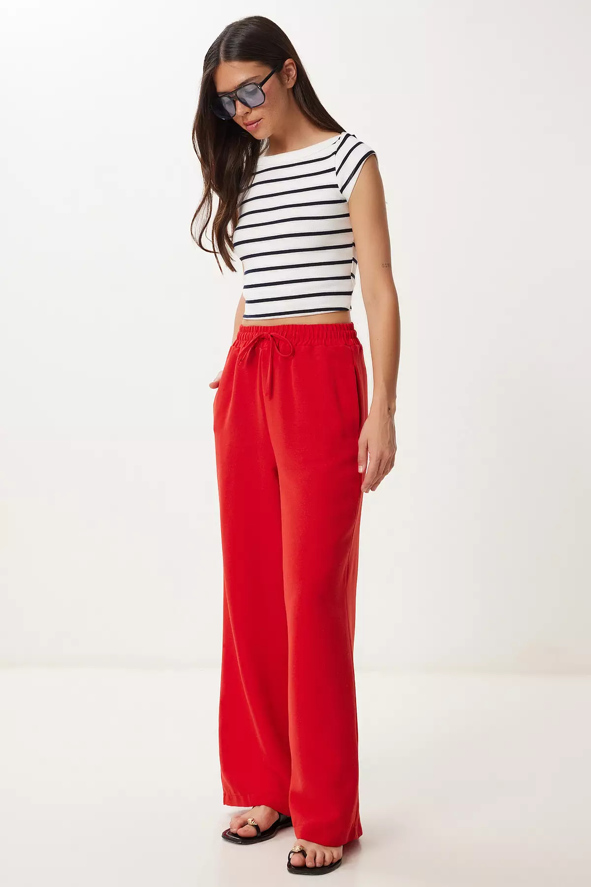 Happiness IstanbulWomen's Red Wide Leg Linen Trousers Dp00261359000.00