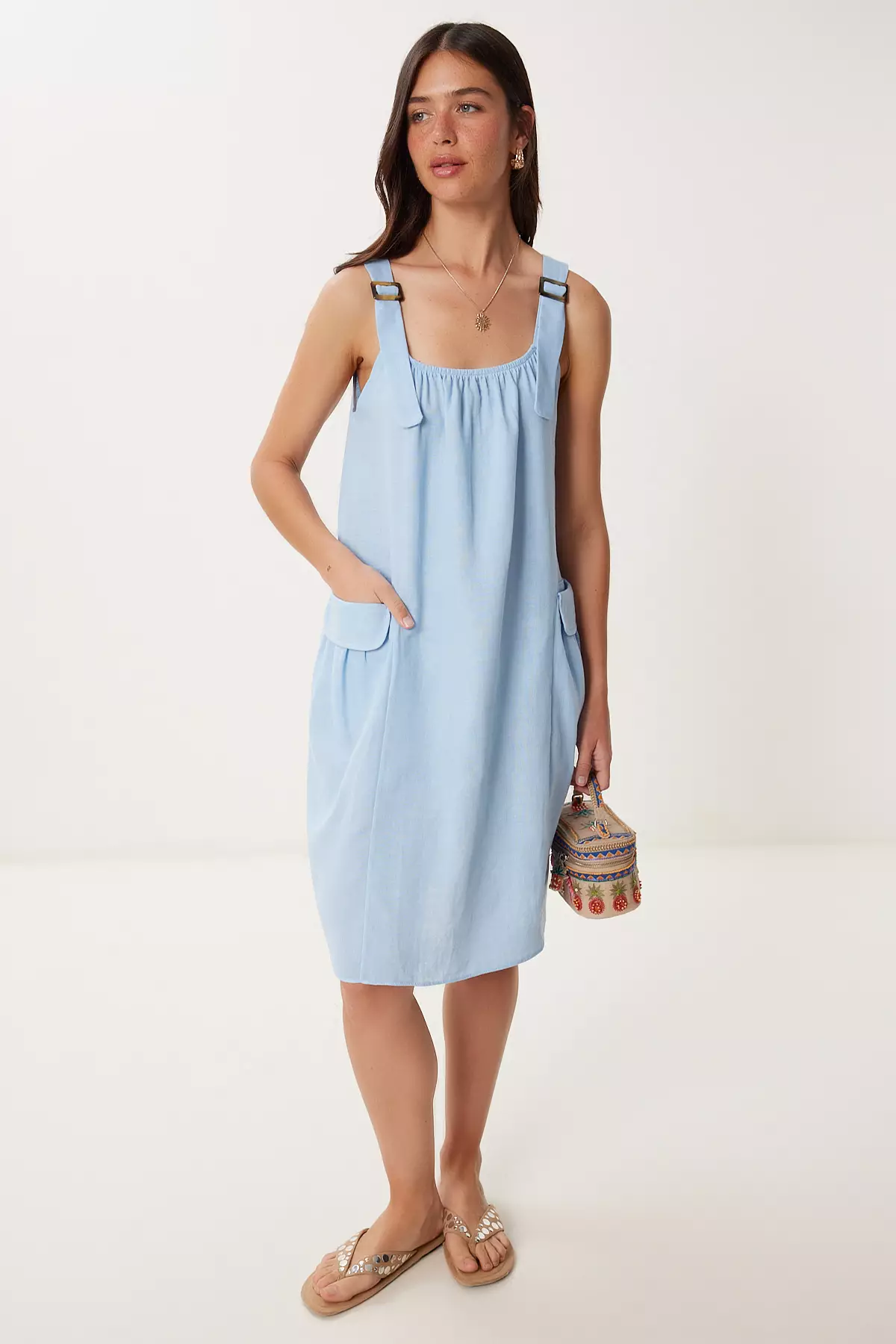 Happiness IstanbulWomen's Sky Blue Linen Blend Light See-Through Beach Dress Gx00009809000.00532350.00