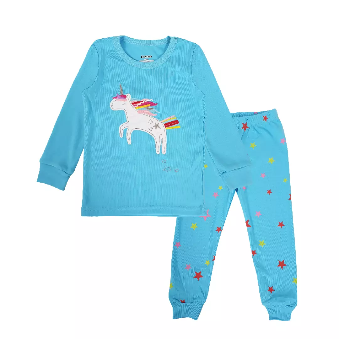 BAJU TIDUR PIYAMA ANAK SETELAN ANAK PEREMPUAN LENGAN PANJANG - Blue Unicorn Goyama