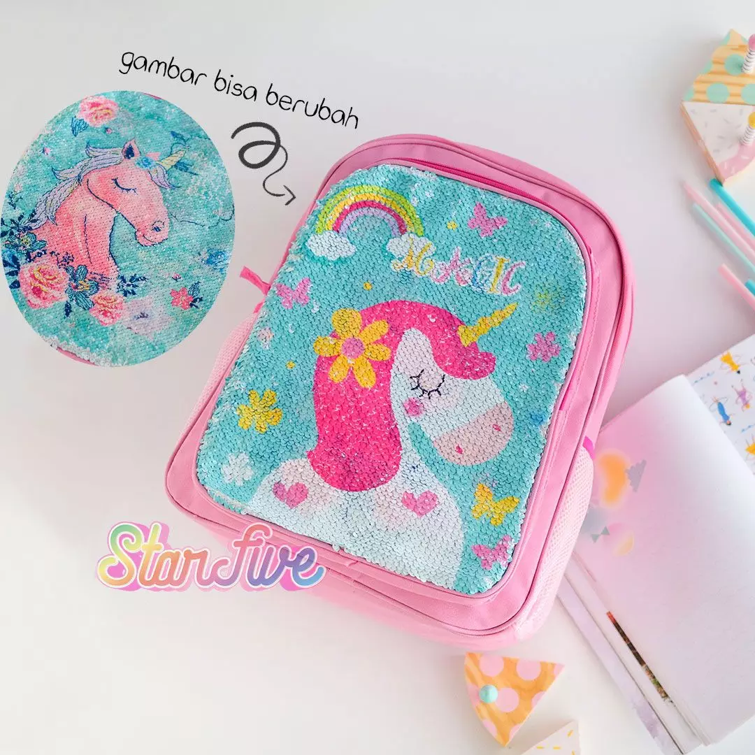 TAS SEKOLAH BACKPACK BISA GANTI GAMBAR STARFIVE - UNICORN PINK