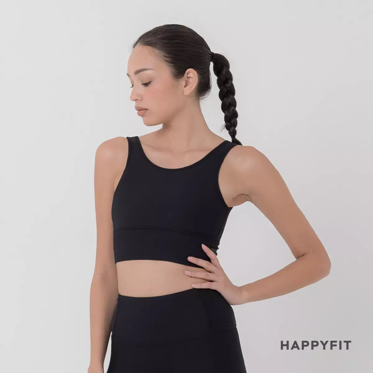 HAPPYFIT PLEATED Basic Two Ways Sports Bra Black