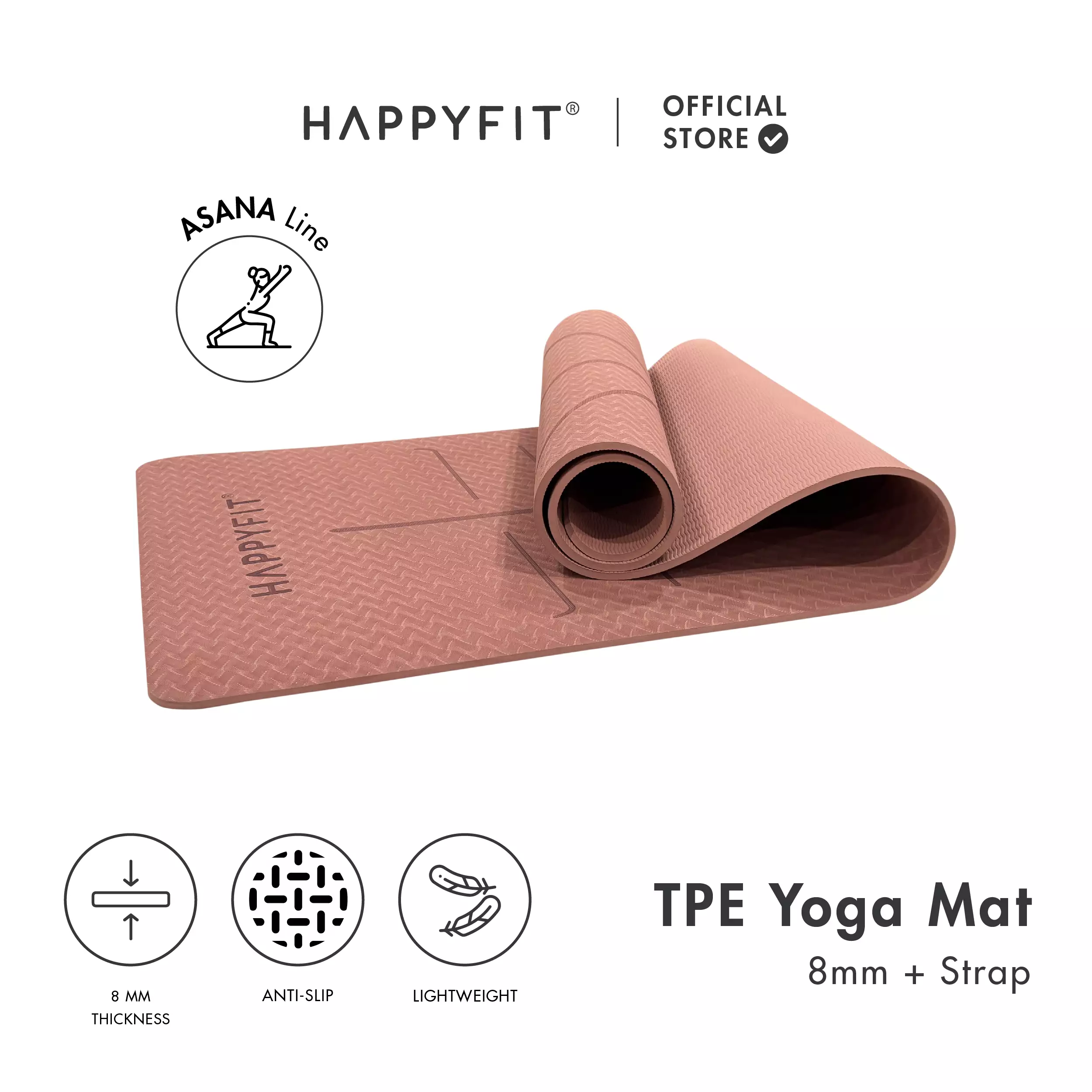 HAPPYFIT - Yoga Mat Asana TPE 8mm Eco Friendly (FREE STRAP) / Matras Yoga / Matras Olahraga / Matras TPE Terracotta