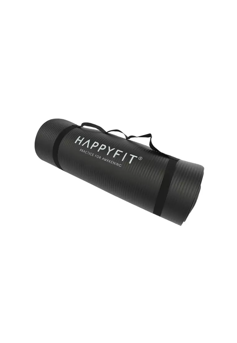 HAPPYFIT Yoga Mat Polos NBR 15mm Free Strap Black