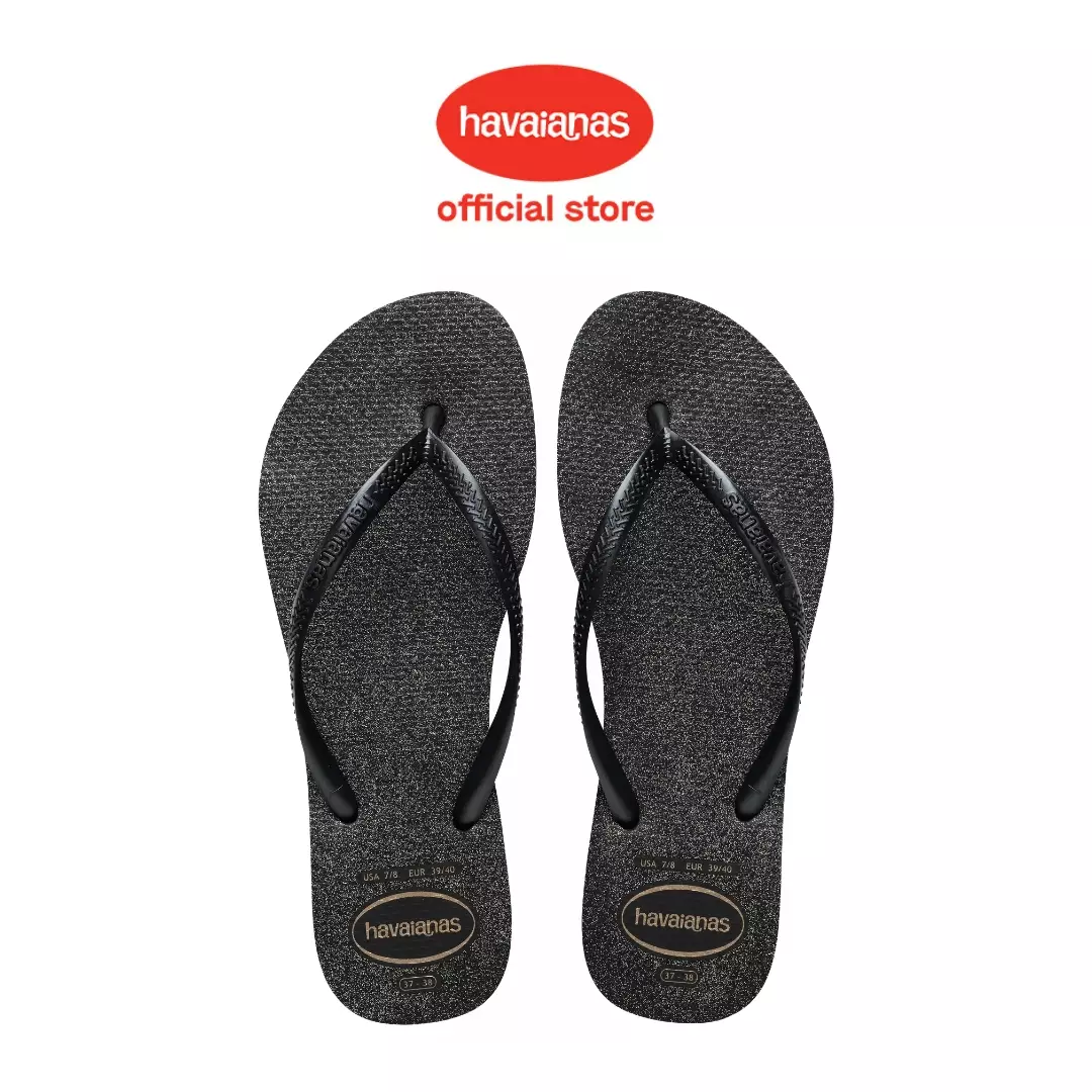 [ONLINE EXCLUSIVE] Havaianas Slim Gloss Black / Silver / Black - Sandal Wanita