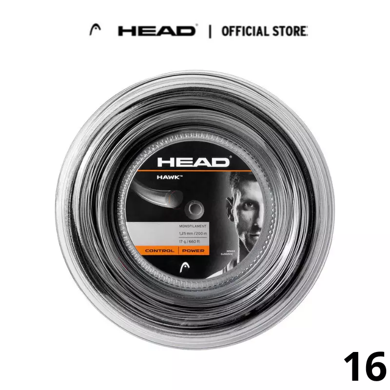HEAD Hawk 200m Tennis Strings Reel 16 Black 281113 - Senar Raket Tennis (Hitam)