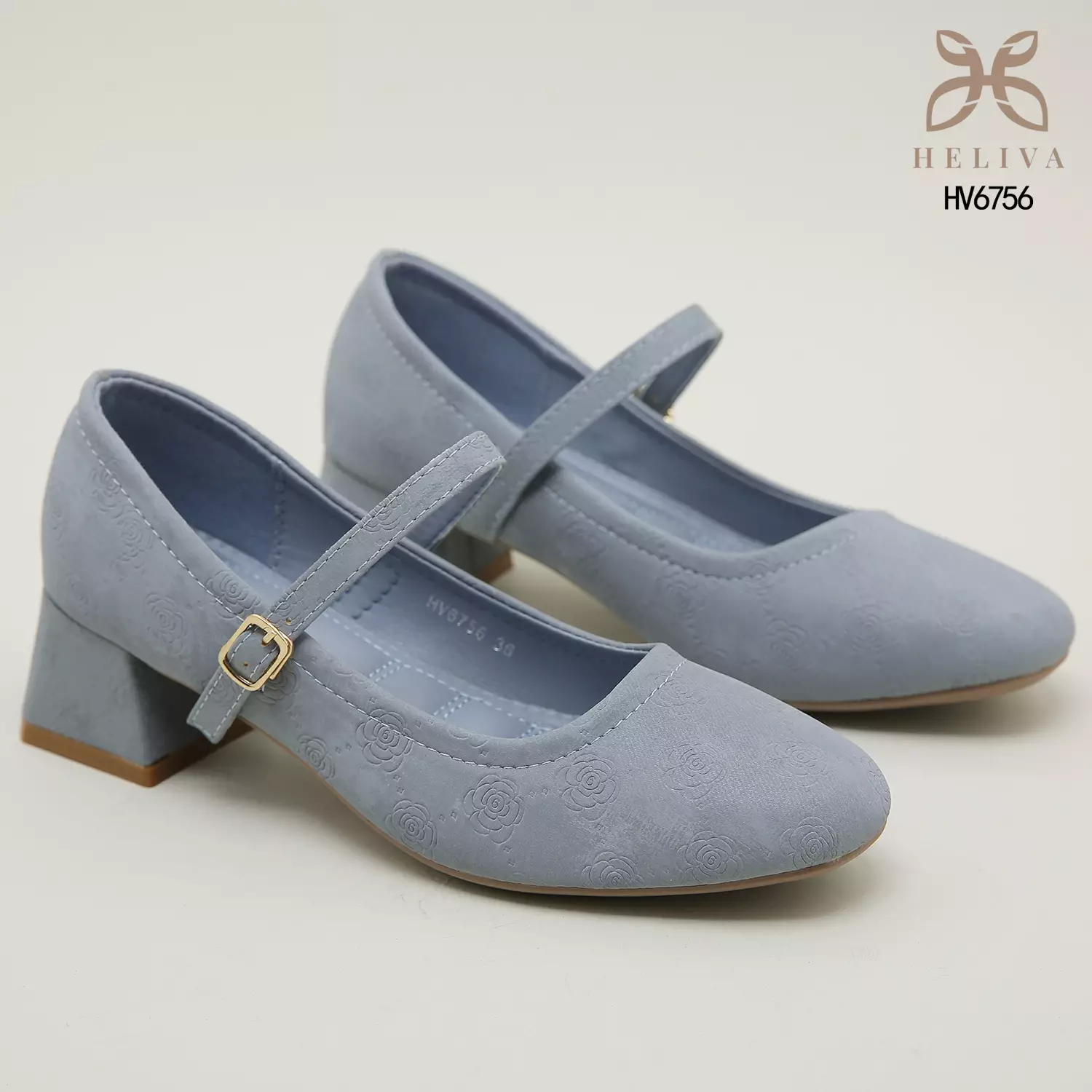 Heliva Kimmy Marry Jane Shoes Heels Chunky Embossed Flower Sol 5cm