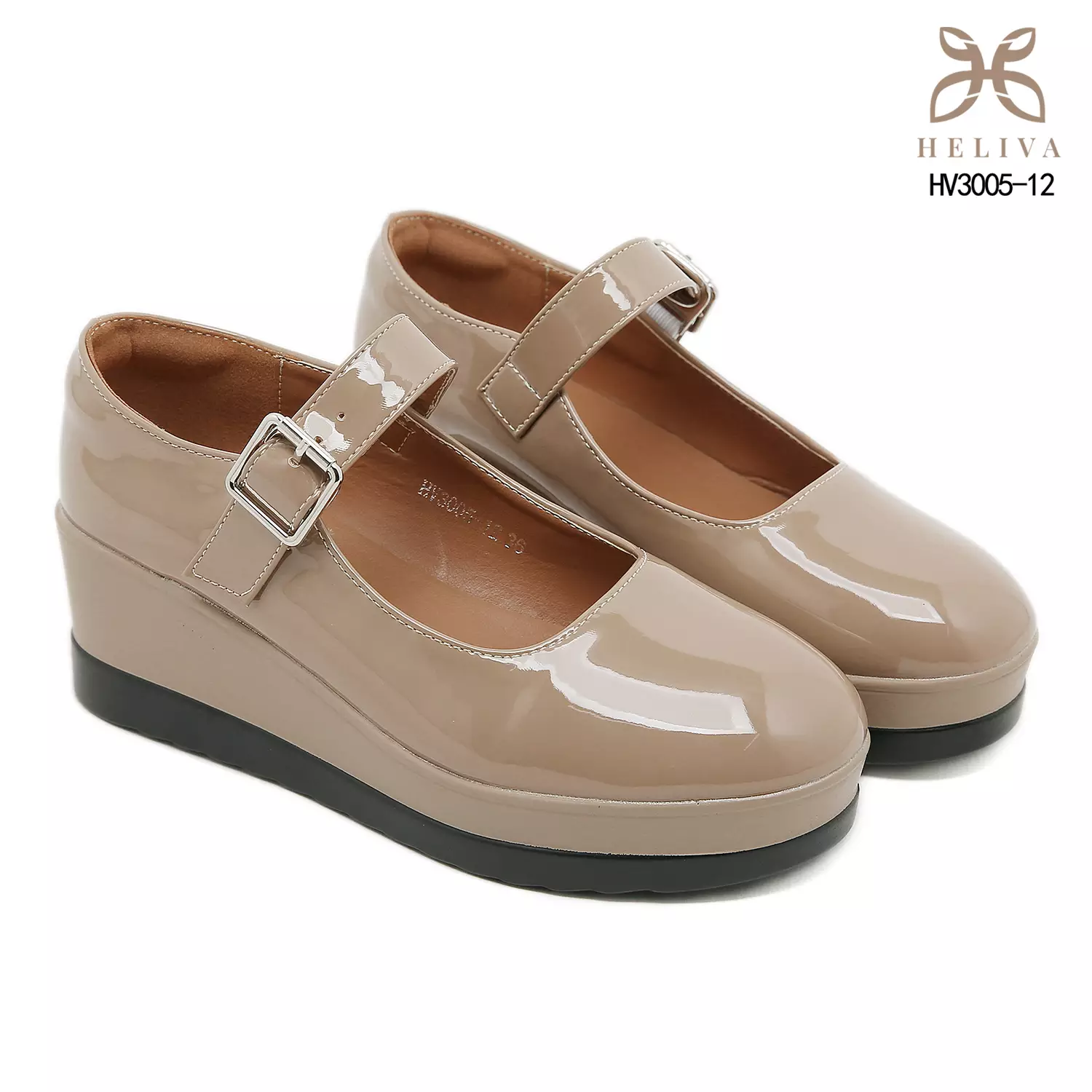 Heliva Mikha Glossy Strap Wedges with Feminine Charm Heel 5.5cm HV3005-12