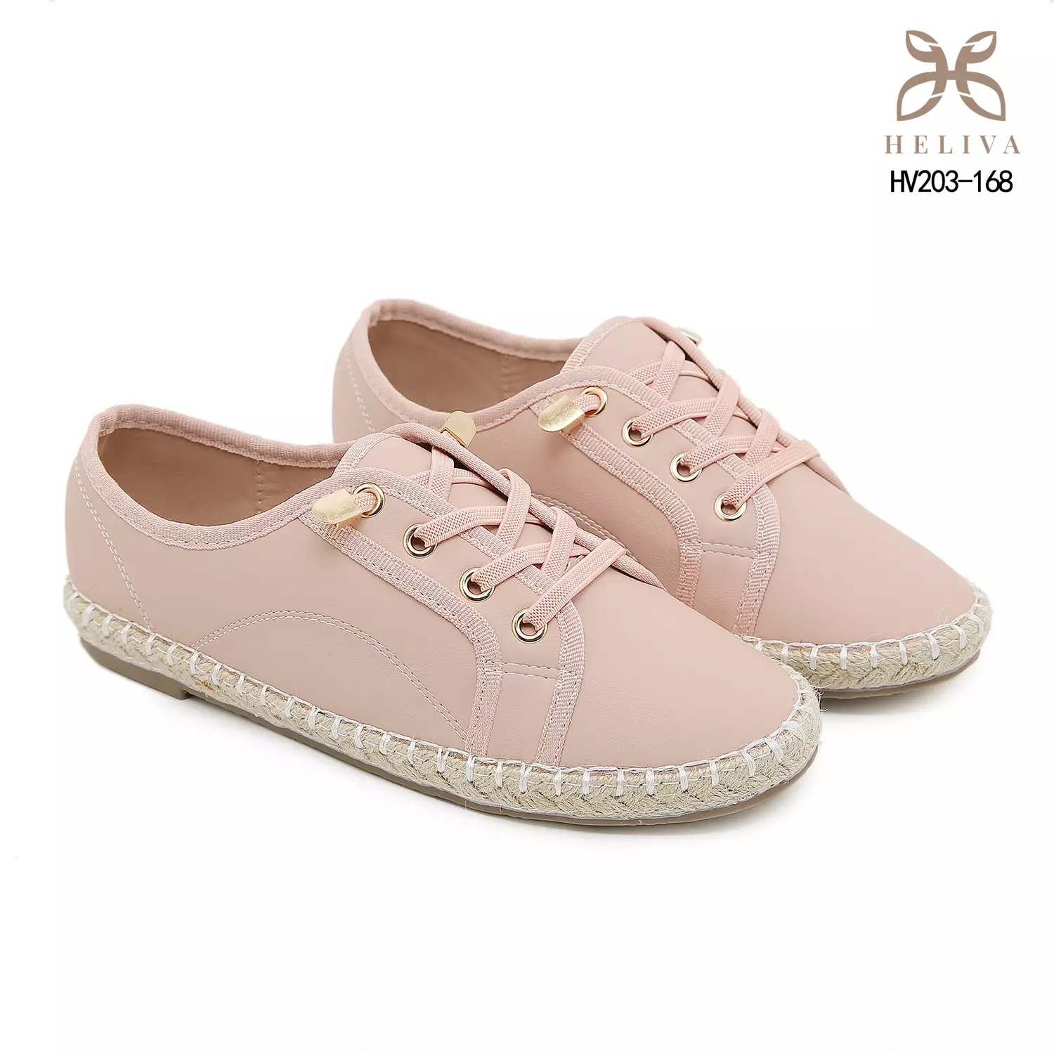 HELIVA MILEN Sneakers Casual Wanita Sol Anyaman Espadrille dan Dekorasi Gold Chain HV203-186