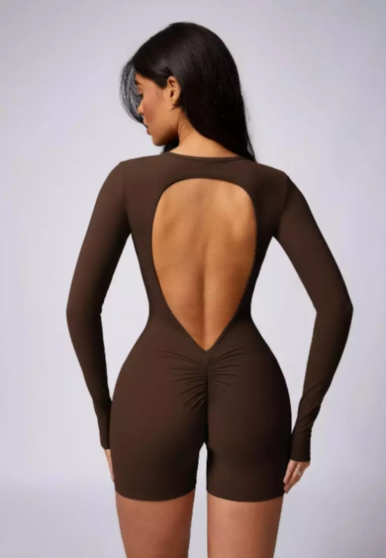 Bareback Romper – Open Back Long Sleeve Seamless Comfort Women Sculpting Fit Ultra-Stretch