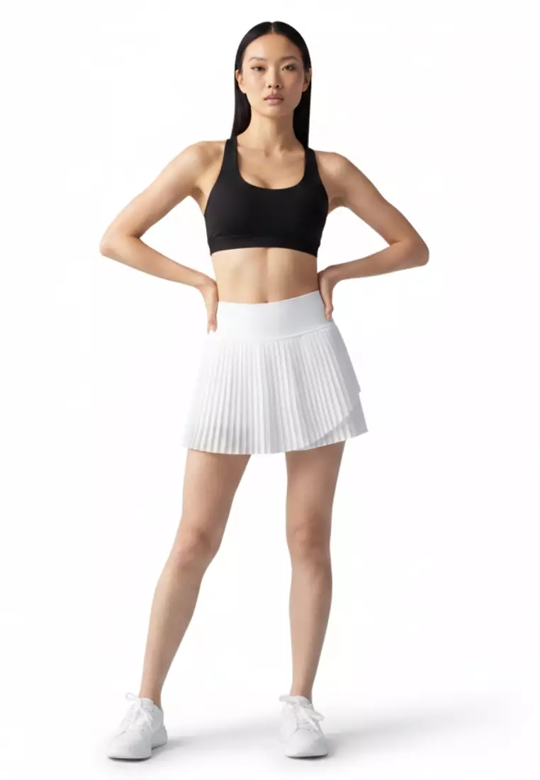 Yume High-Waist Pleated Sport Skirt with Inner Shorts — Tennis Running Yoga Active Skort for Women