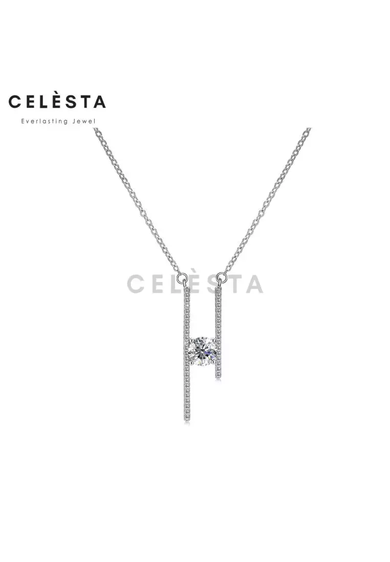 Berlian Moissanite Autre Pendant [GRA CERTIFICATE MOISSANITE DIAMOND] - Kalung Moissanite Diamond 1 CT 925 Silver Celesta by Her Jewellery