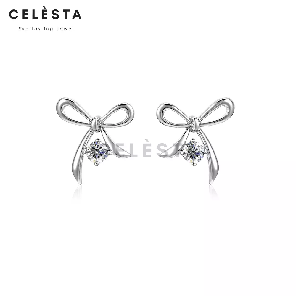 Berlian Moissanite Le Ribbon Earring [GRA CERTIFICATE MOISSANITE DIAMOND] - Anting 0.3ct Moissanite Diamond with 925 Silver Celesta Moissanite