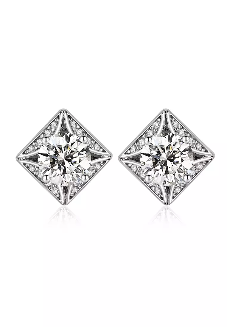 Berlian Moissanite Quatre Earring [GRA CERTIFICATE MOISSANITE DIAMOND] - Anting 0.8 CT Moissanite Diamond with 925 Silver Celesta Moissanite