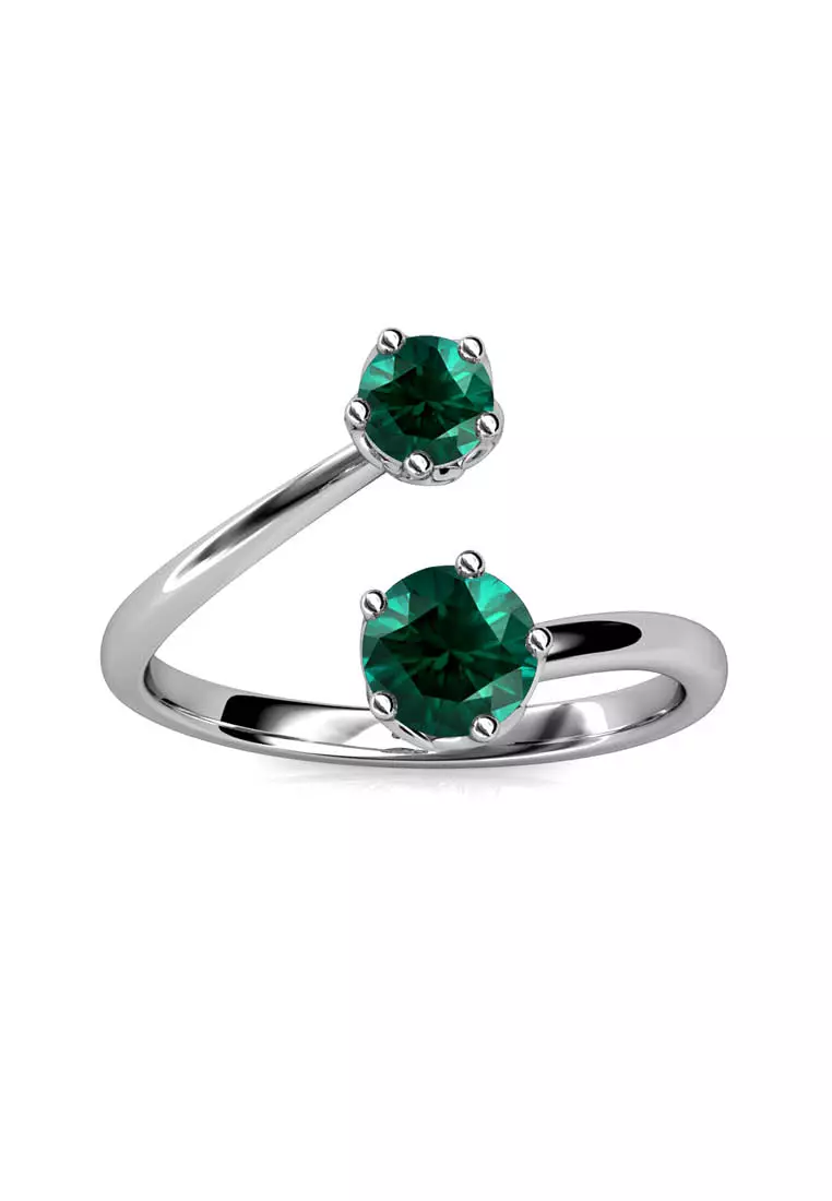 Birth Stone Ring May Emerald WG - Cincin Crystal by Her Jewellery