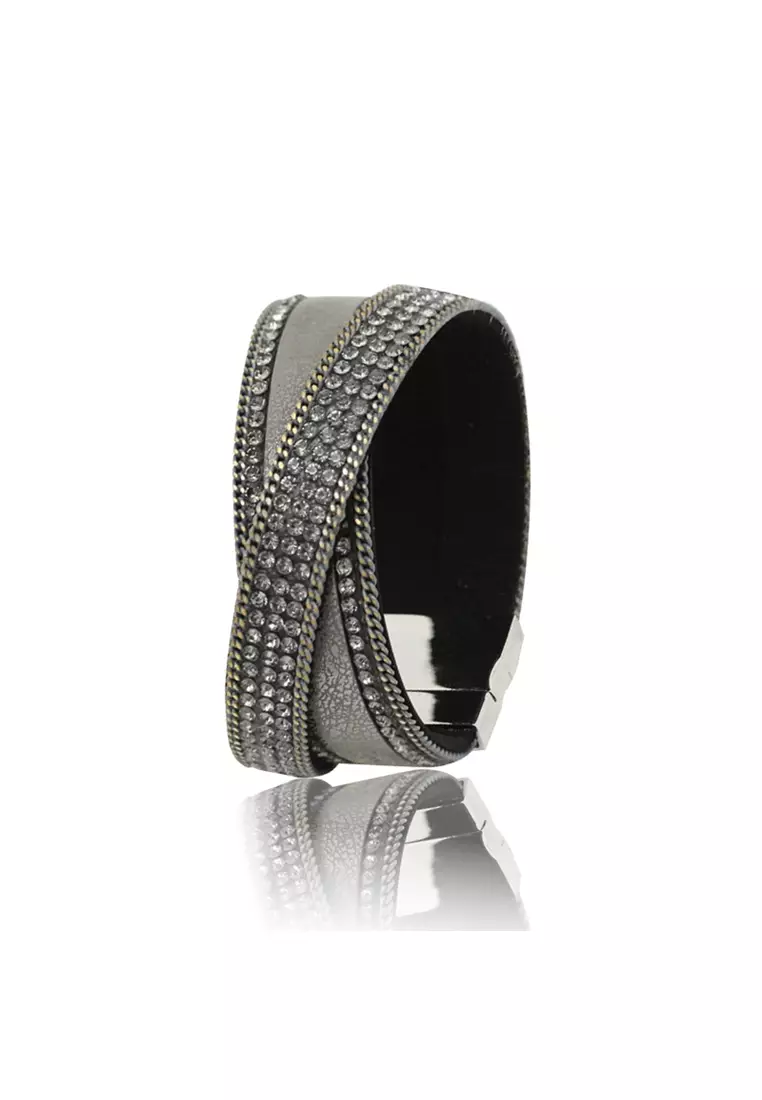 Cross Wrap Bracelet Black Grey - Gelang Crystal Swarovski by Her Jewellery