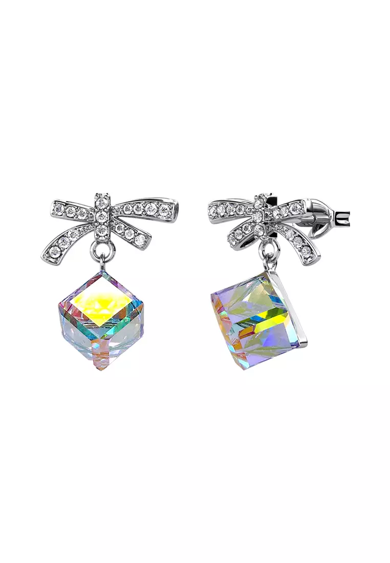 Posie Cube Earring WG AB Rainbow Crystal - Anting Crystal by Her Jewellery