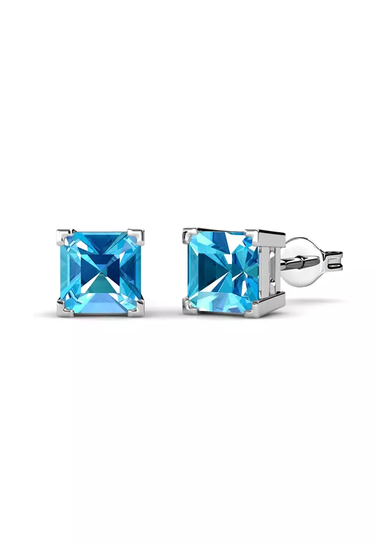 Princess Cut Earring Aquamarine Blue - Anting Crystal Swarovski by Her Jewellery