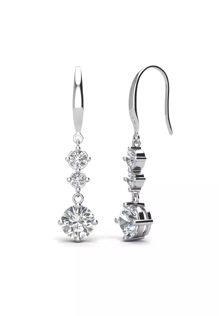 Tri Dangling Hook Earrings WG - Anting Crystal by Her Jewellery