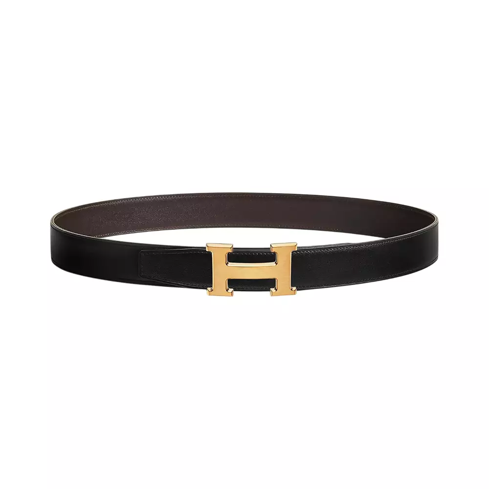 H Brushed Gold Buckle & Reversible Belt 32mm Box 135 Calfskin Black/Ebene