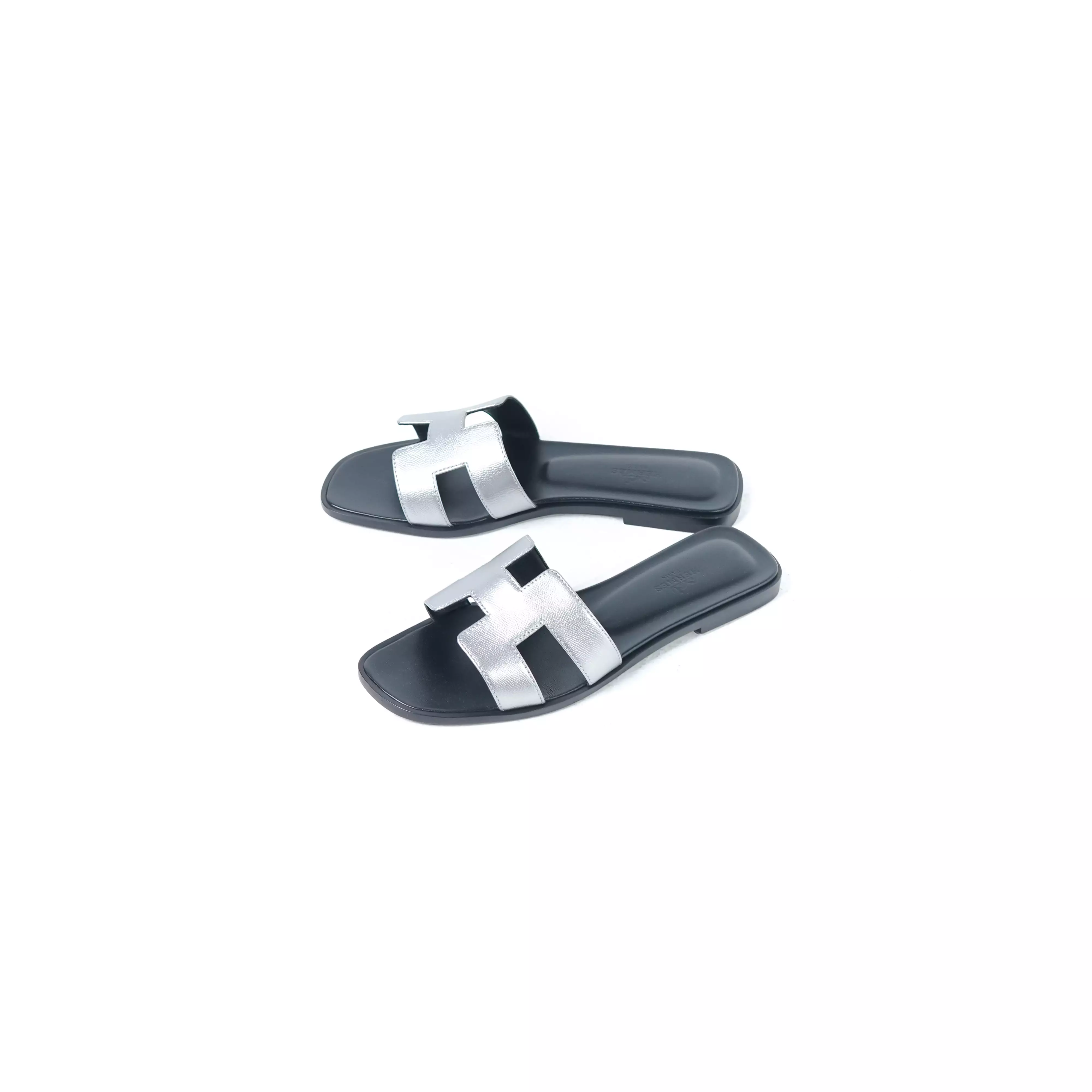 Sandal HERMES ORAN METALLIC SILVER BLACK SANDAL 100% ORIGINAL