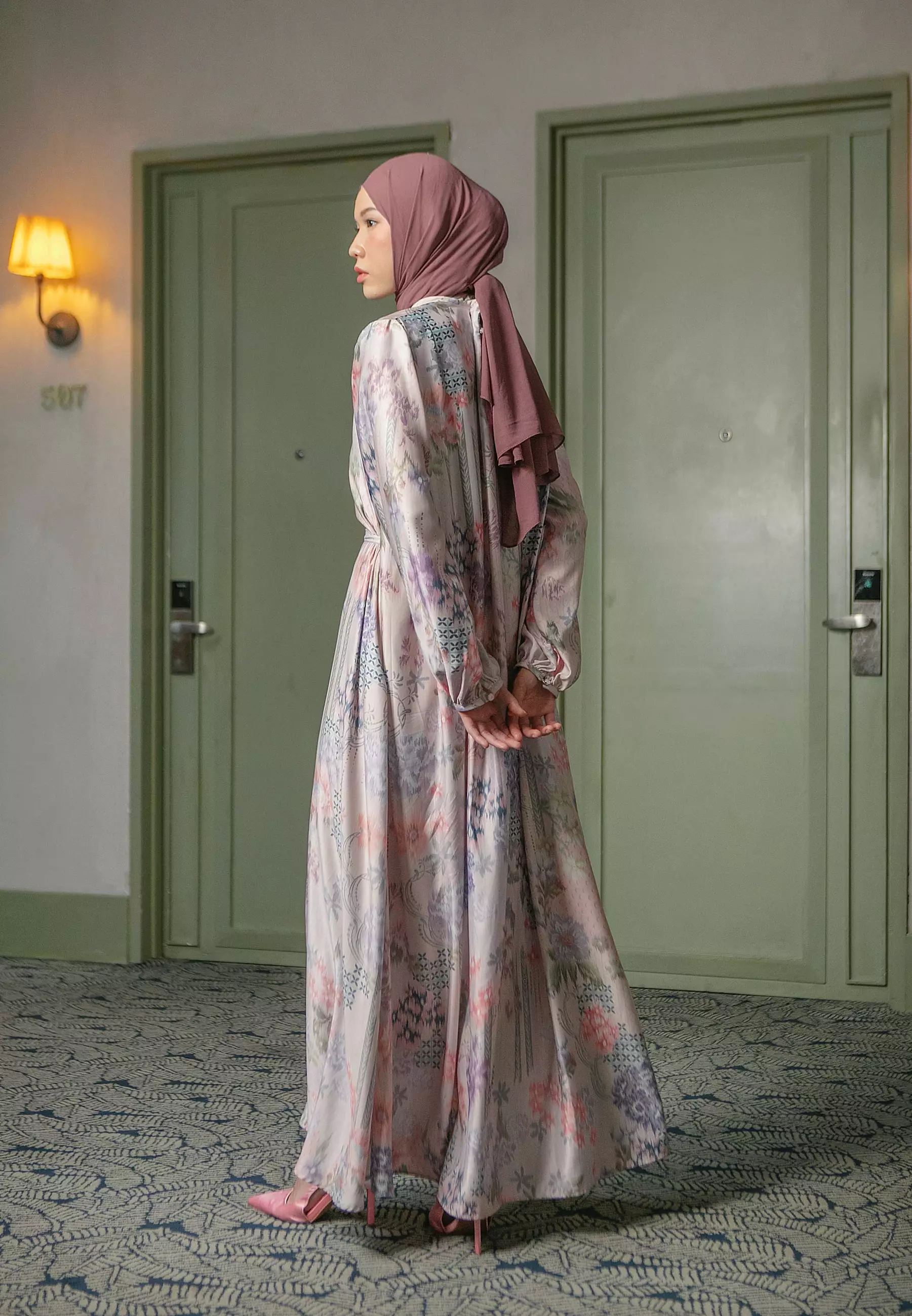 HijabChic Allium Orchid Purple Dress - Dress Lebaran Sarimbit Satin Motif Bunga Elegan Tali Pinggang