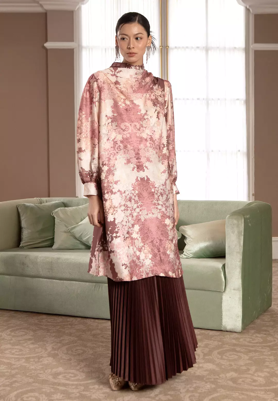 HijabChic Edeline Tunic Rosewood - Baju Lebaran Motif Floral Elegan