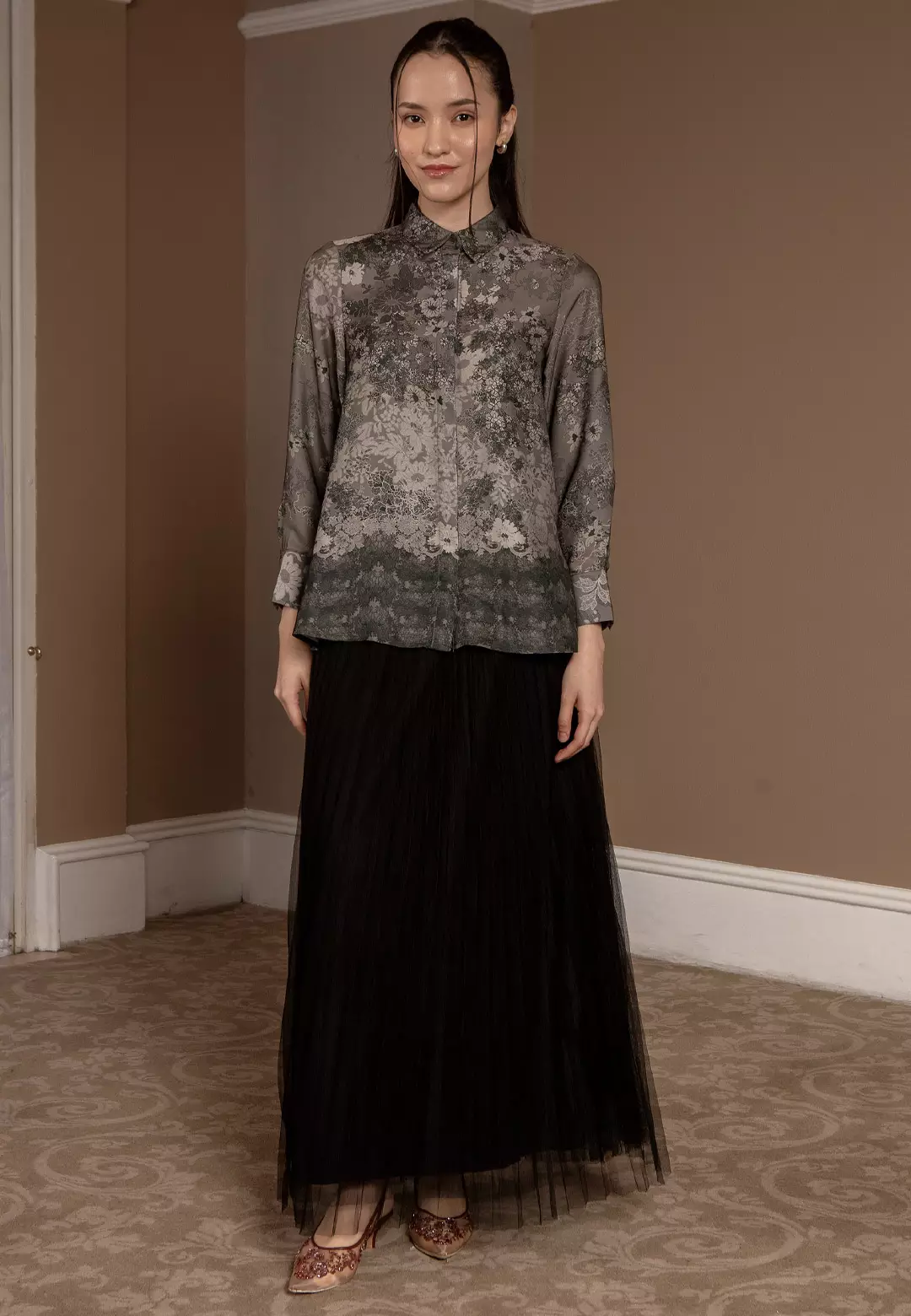 HijabChic Maia Top Olive Ash - Baju Lebaran Klasik Motif Floral