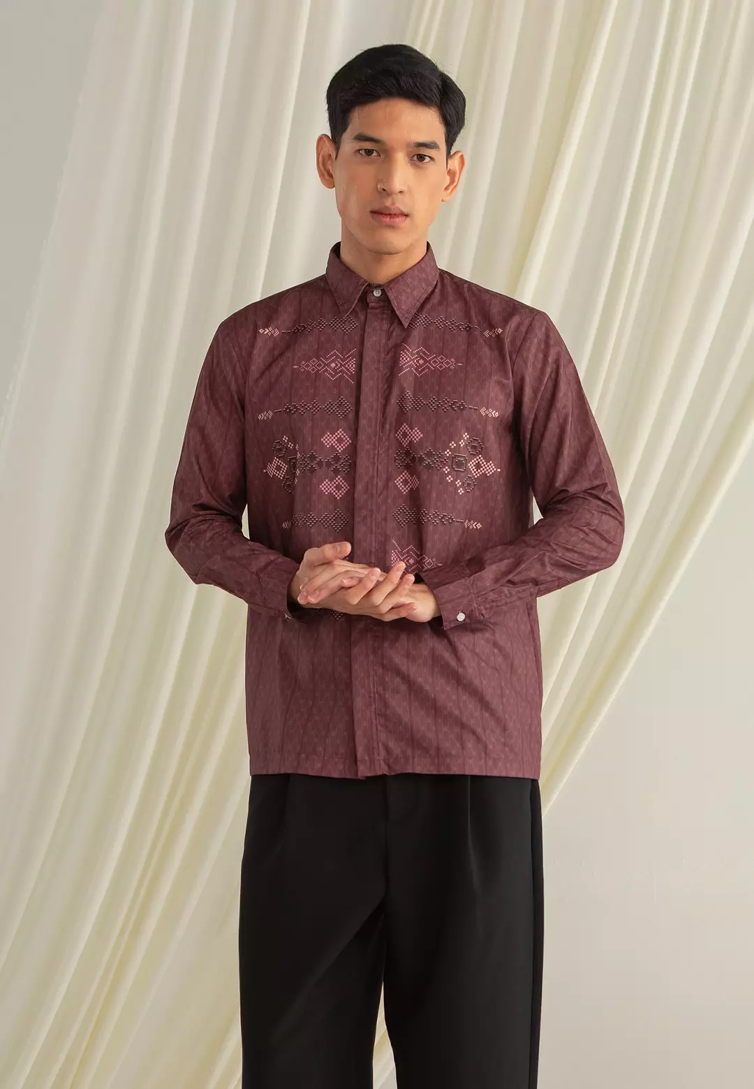 HijabChic Malik Koko Maroon - Baju Lebaran Pria Koko Motif Geometris