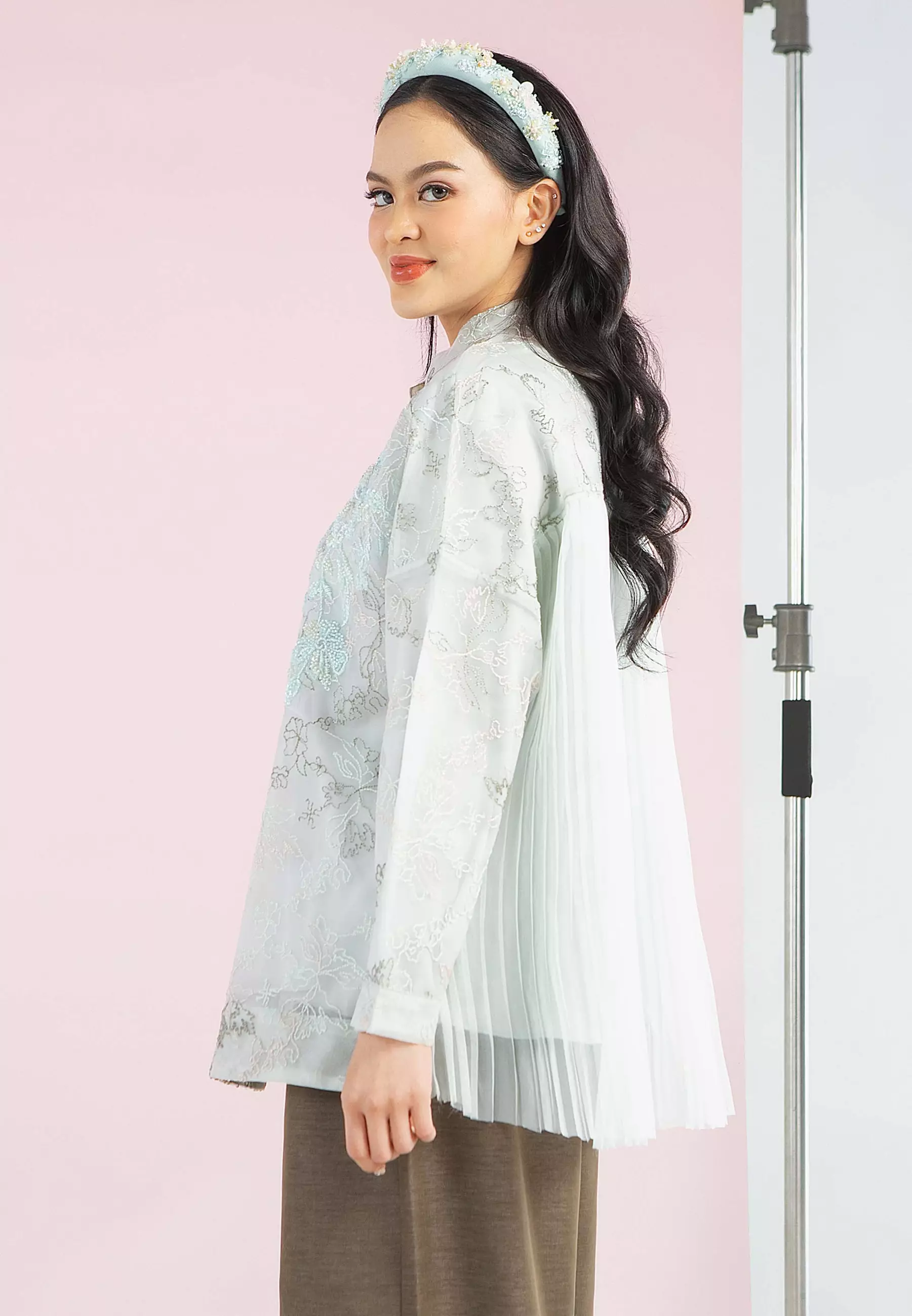 HijabChic Moa Mint Top - Baju Lebaran Elegan Brukat Payet Bunga Premium Pleats Belakang Cantik