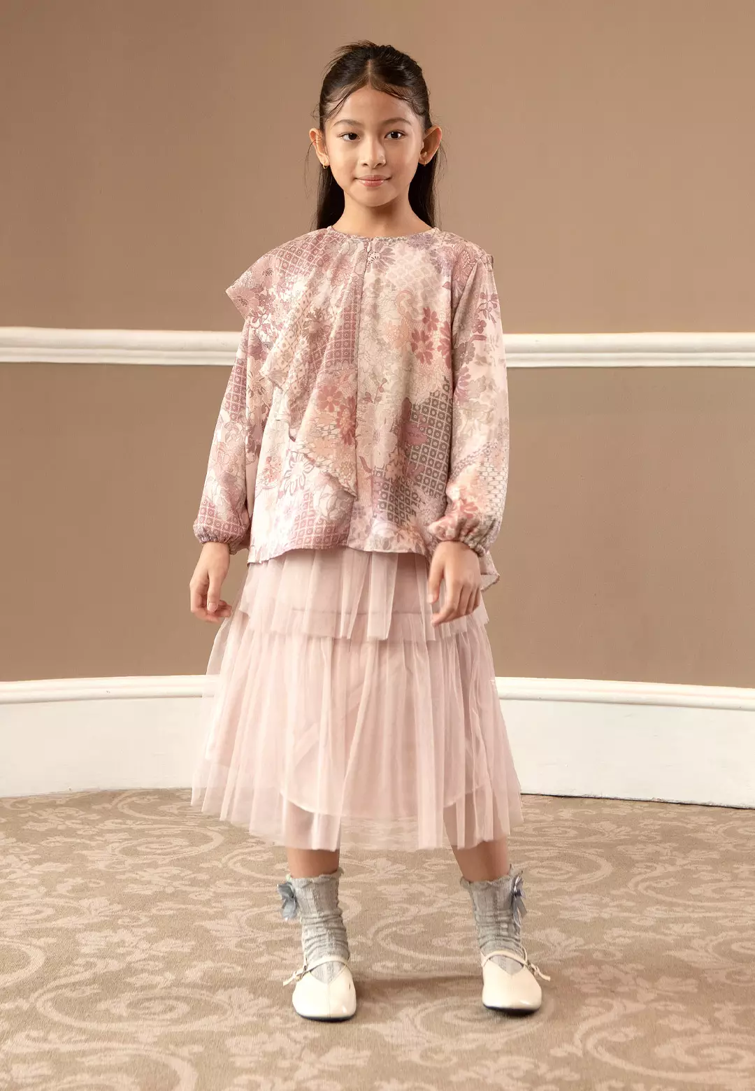 HijabChic Rosie Girl Top Peach - Baju Lebaran Motif Anak Perempuan