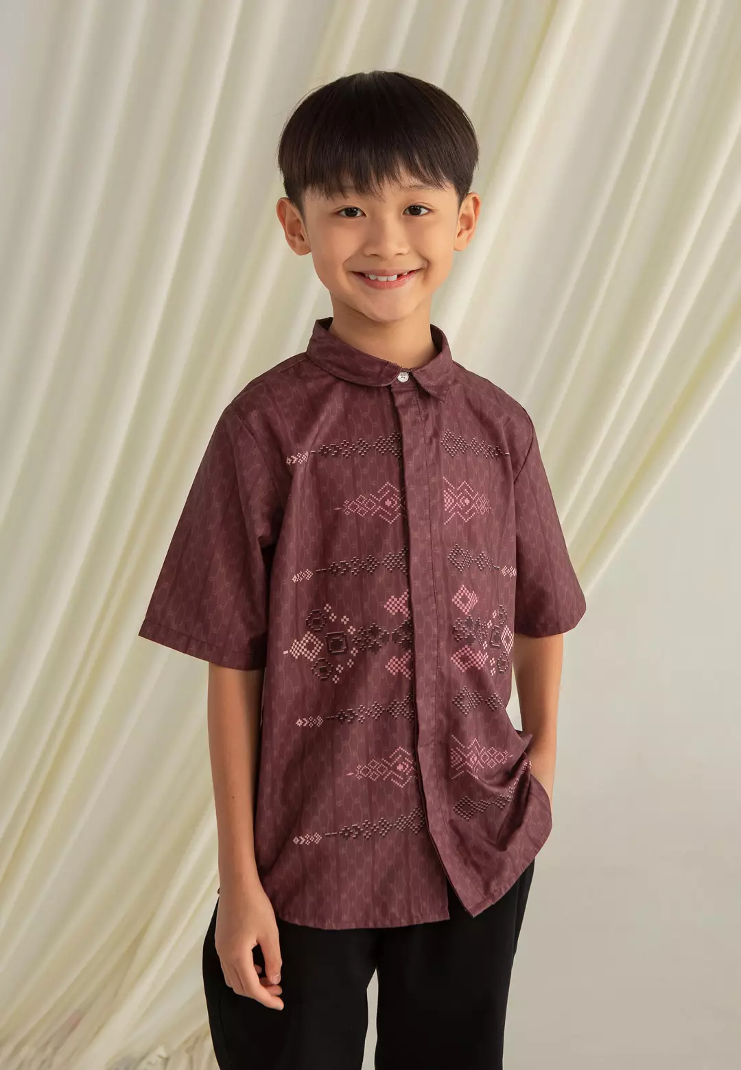 HijabChic Rumi Koko Boy Maroon - Baju Lebaran Anak Laki-Laki Koko Motif Geometris