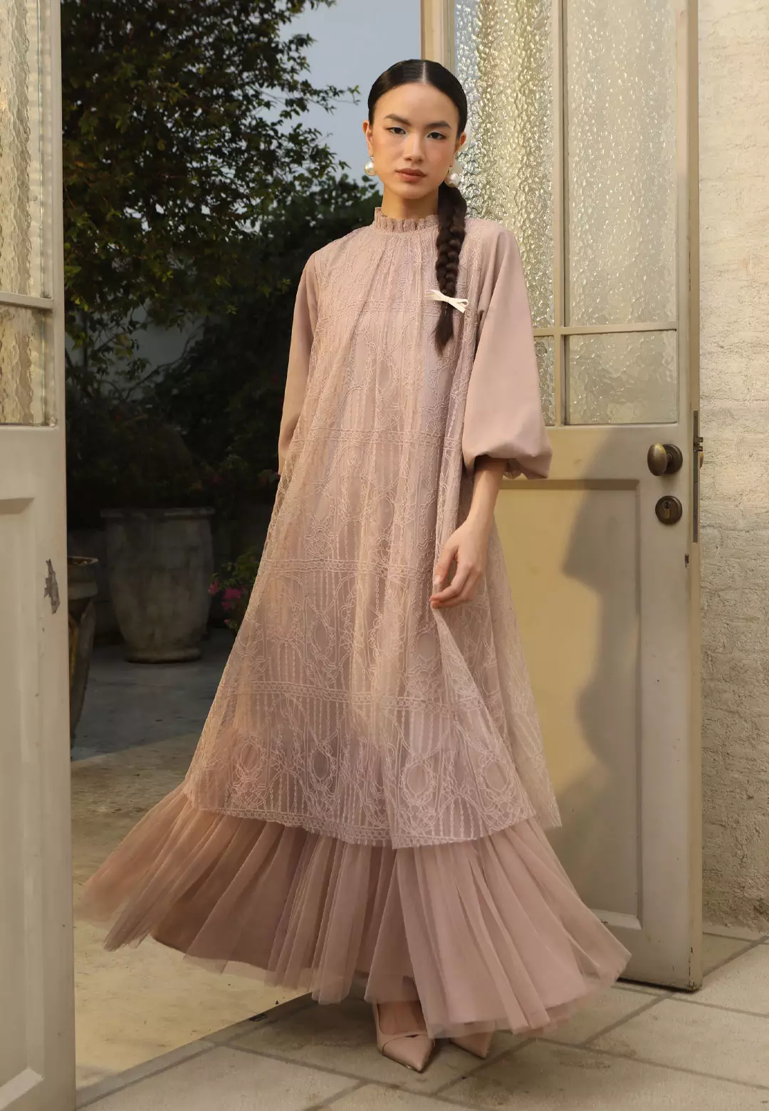 HijabChic Syahira Mocca Dress - Dress Brukat Tulle Elegan Best Seller