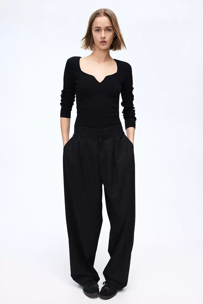 Rib-knit sweetheart-neck top