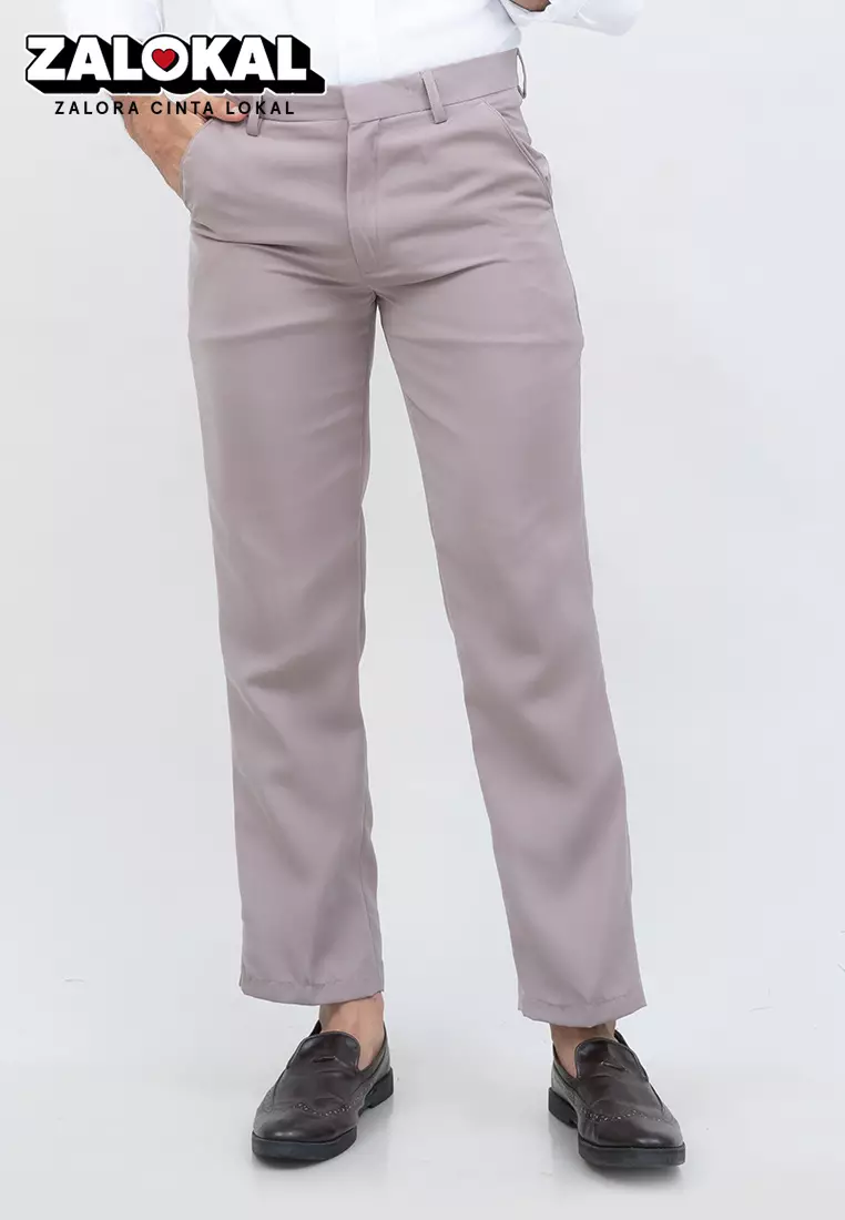 Celana bahan kerja reguler panjang formal lurus (BUKAN SLIM FIT) krim