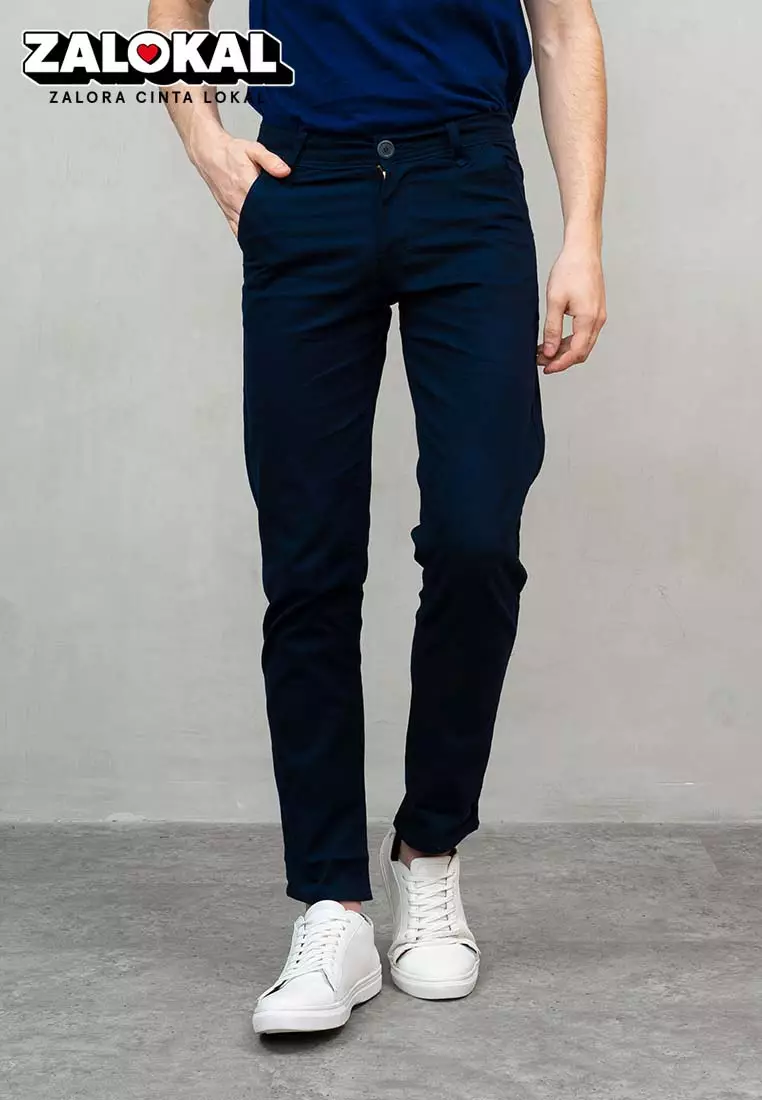 Celana Panjang chino slim fit navy blue chino pants bahan stretch
