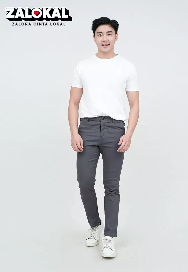 Houseofcuff Celana Panjang Chino Abu Abu Slim Fit Stretch Expandable