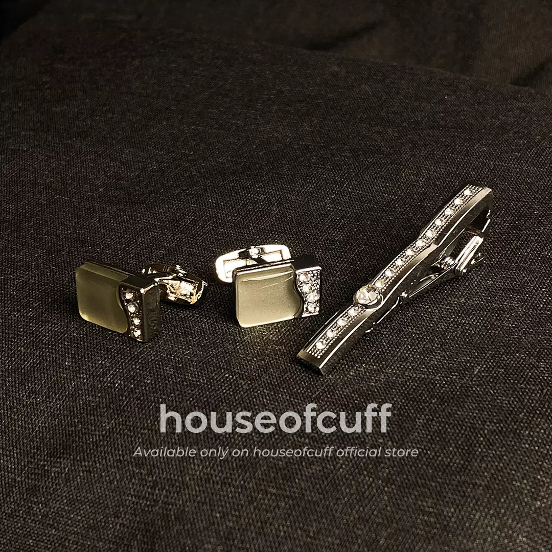 Houseofcuff cufflinks & jepit dasi pin tie set warna silver X026