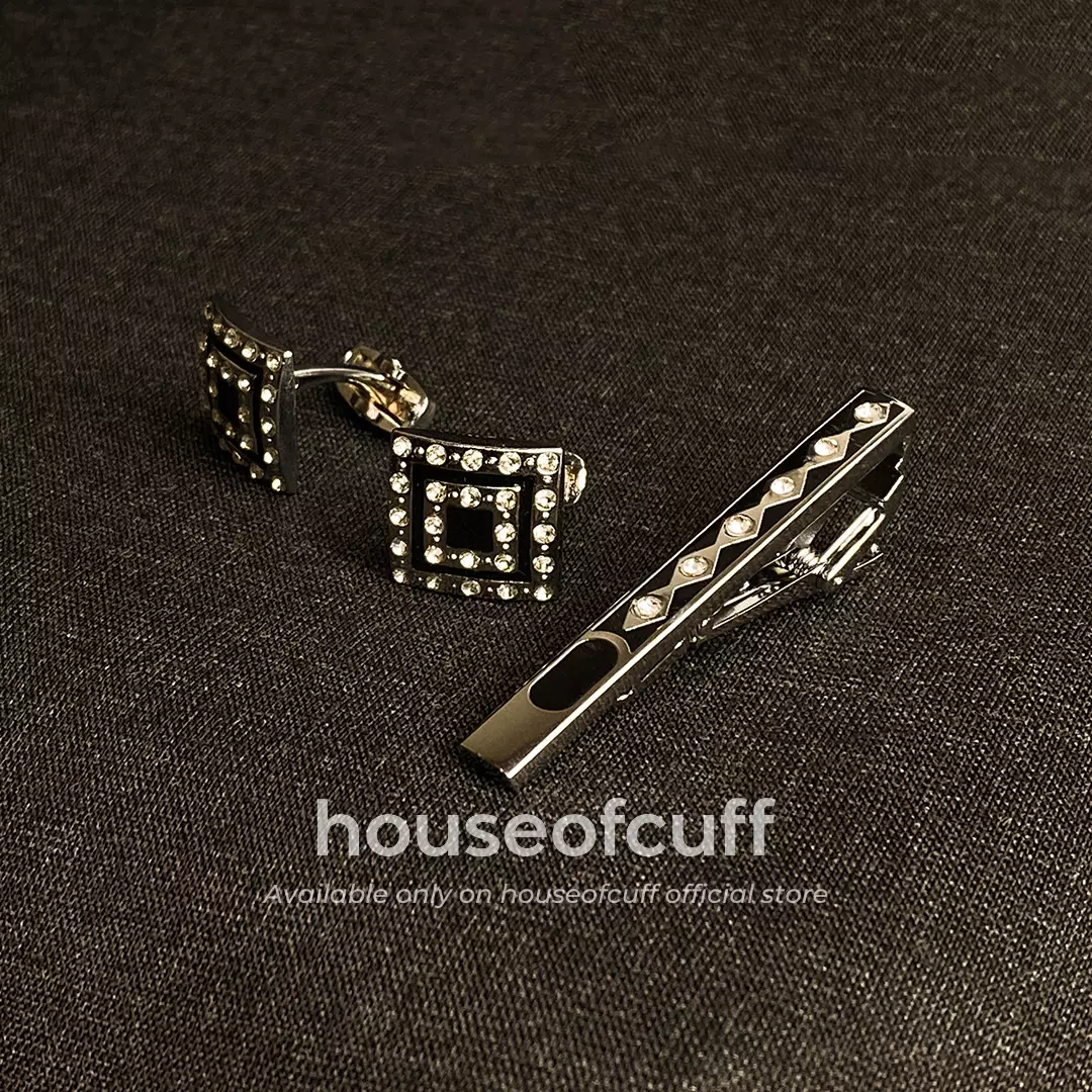 Houseofcuff cufflinks & jepit dasi pin tie set warna silver X036