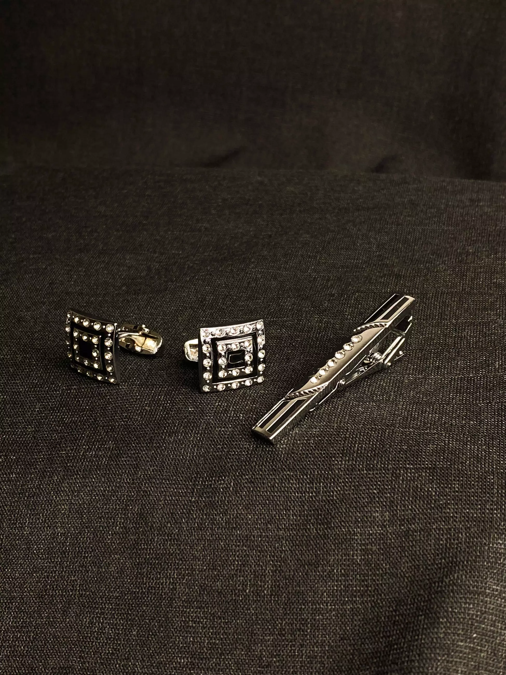 Houseofcuff cufflinks & jepit dasi pin tie set warna silver X037