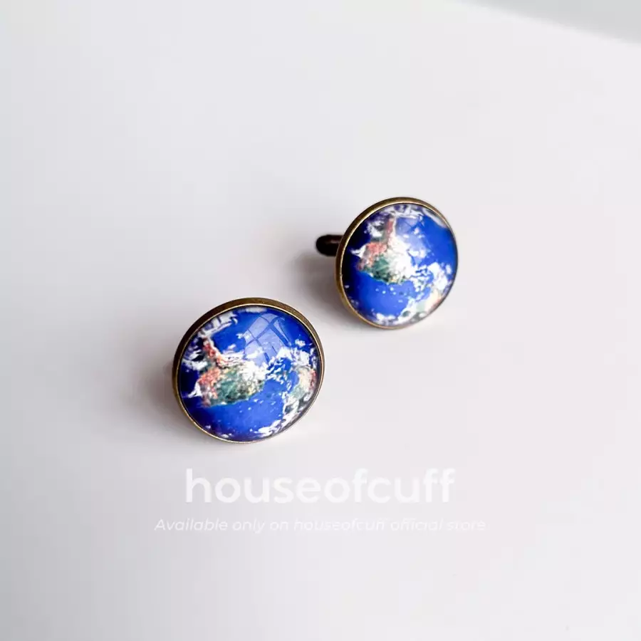 houseofcuff Cufflinks kancing manset kemeja peta dunia biru