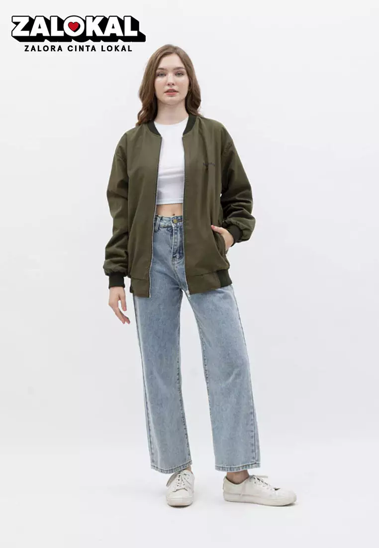 Houseofcuff Jaket Bomber Wanita Pria Unisex Polos Windbreaker Army